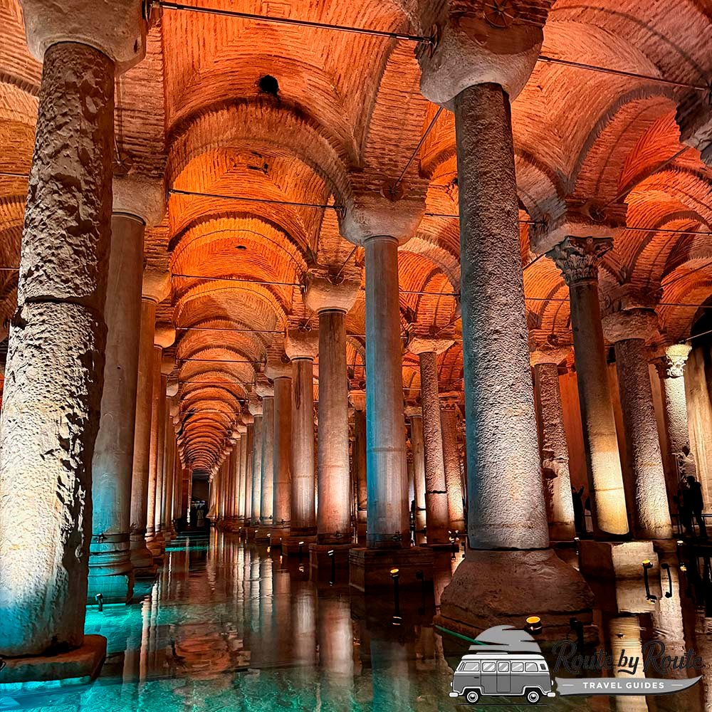 No te pierdas las famosas cabezas de Medusa, colocadas de lado y boca abajo, ni los reflejos del agua que convierten el paseo en una experiencia muy especial.