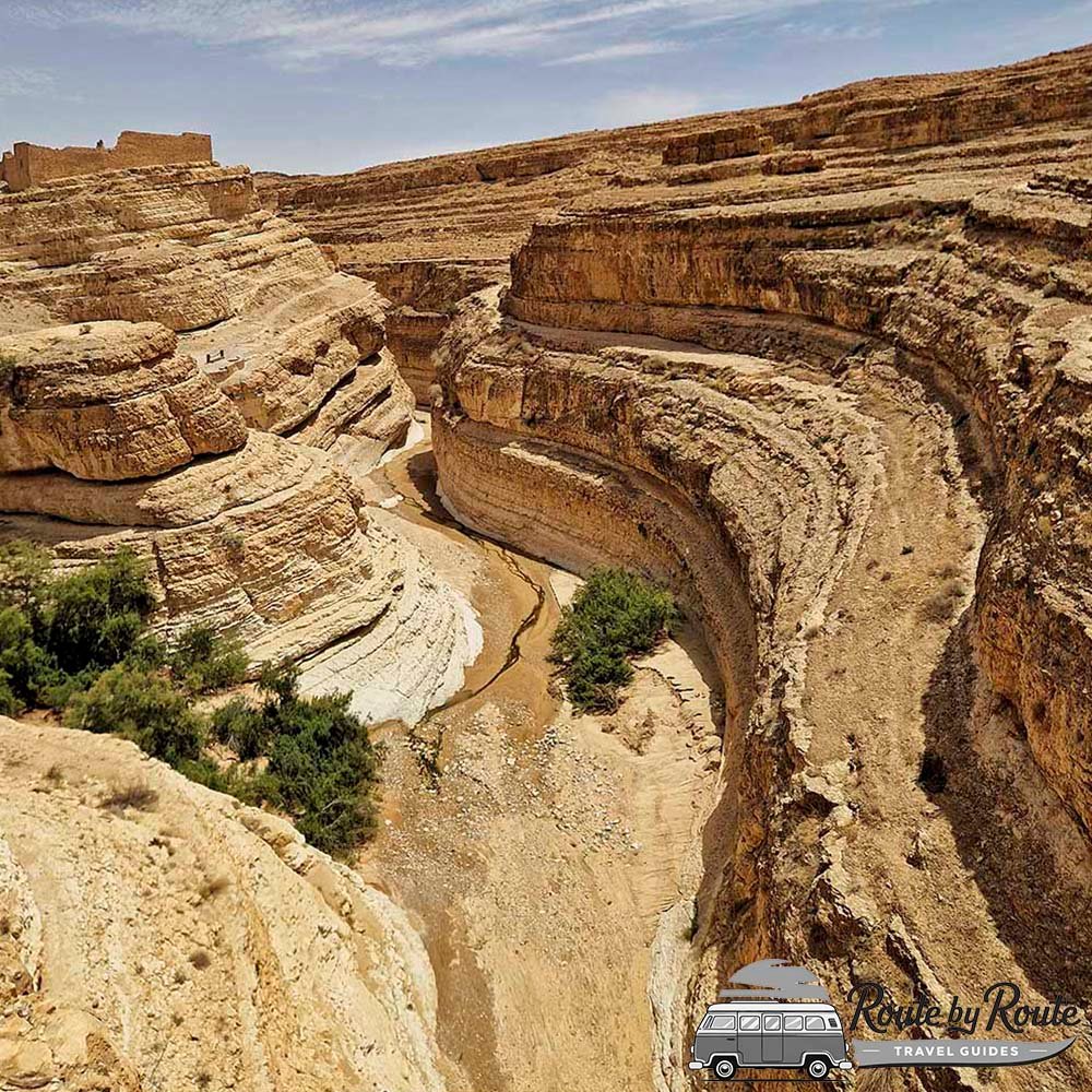 Una ruta fascinante cerca de la frontera con Argelia para descubrir cañones impresionantes, palmerales que nacen de la roca, cascadas y paisajes áridos de película (también escenarios de Star Wars y El Paciente Inglés).