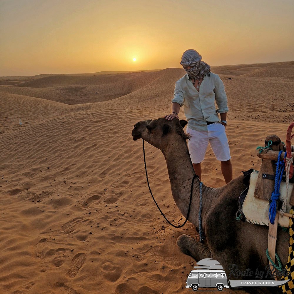 Si buscas una experiencia más relajada, tradicional y fotogénica, el paseo en dromedario al atardecer es un clásico que no falla. Al igual que los quads, las mejores zonas para hacerlo son partiendo desde Douz o desde el palmeral de Ksar Ghilane.