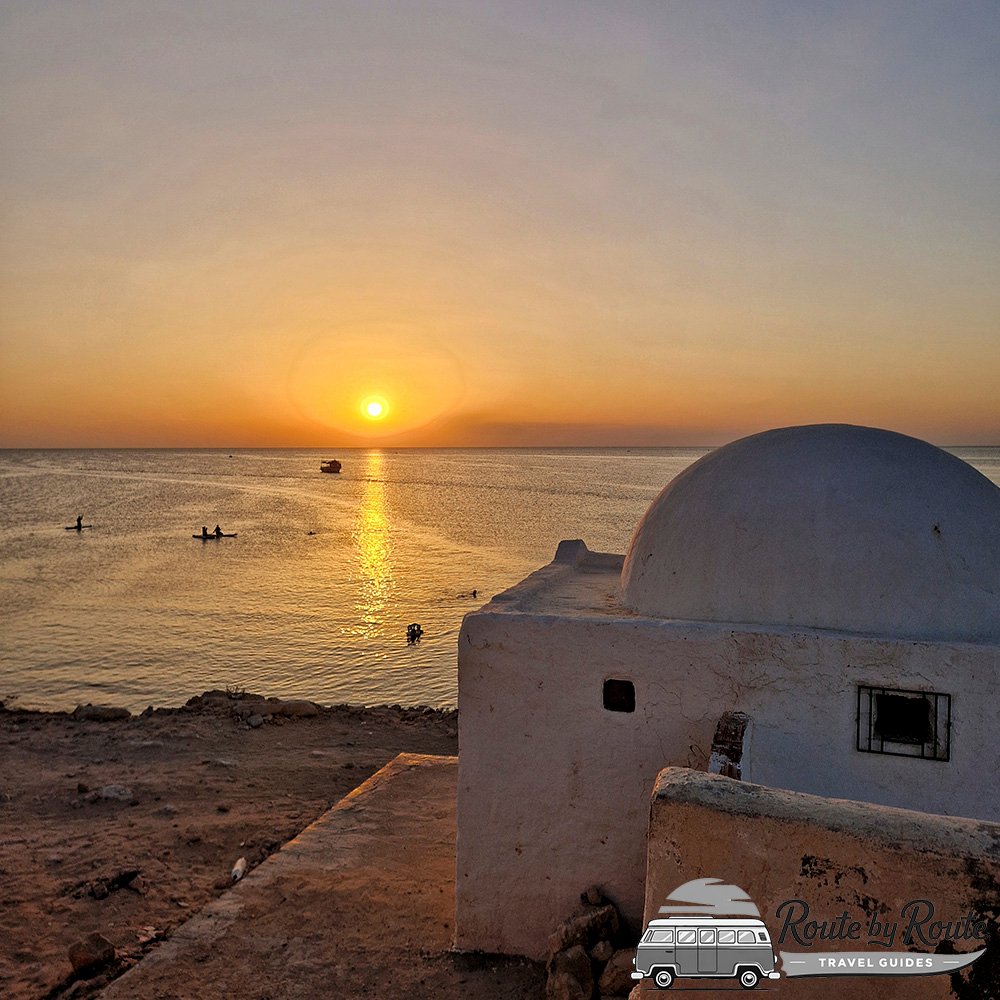 Día 7 | Exploración de Houmt Souk, Fortaleza, Medina y compras. | Comida en la playa de la Séguia, Sinagoga de la Ghriba. Atardecer en la mezquita de Sidi Jemour. |